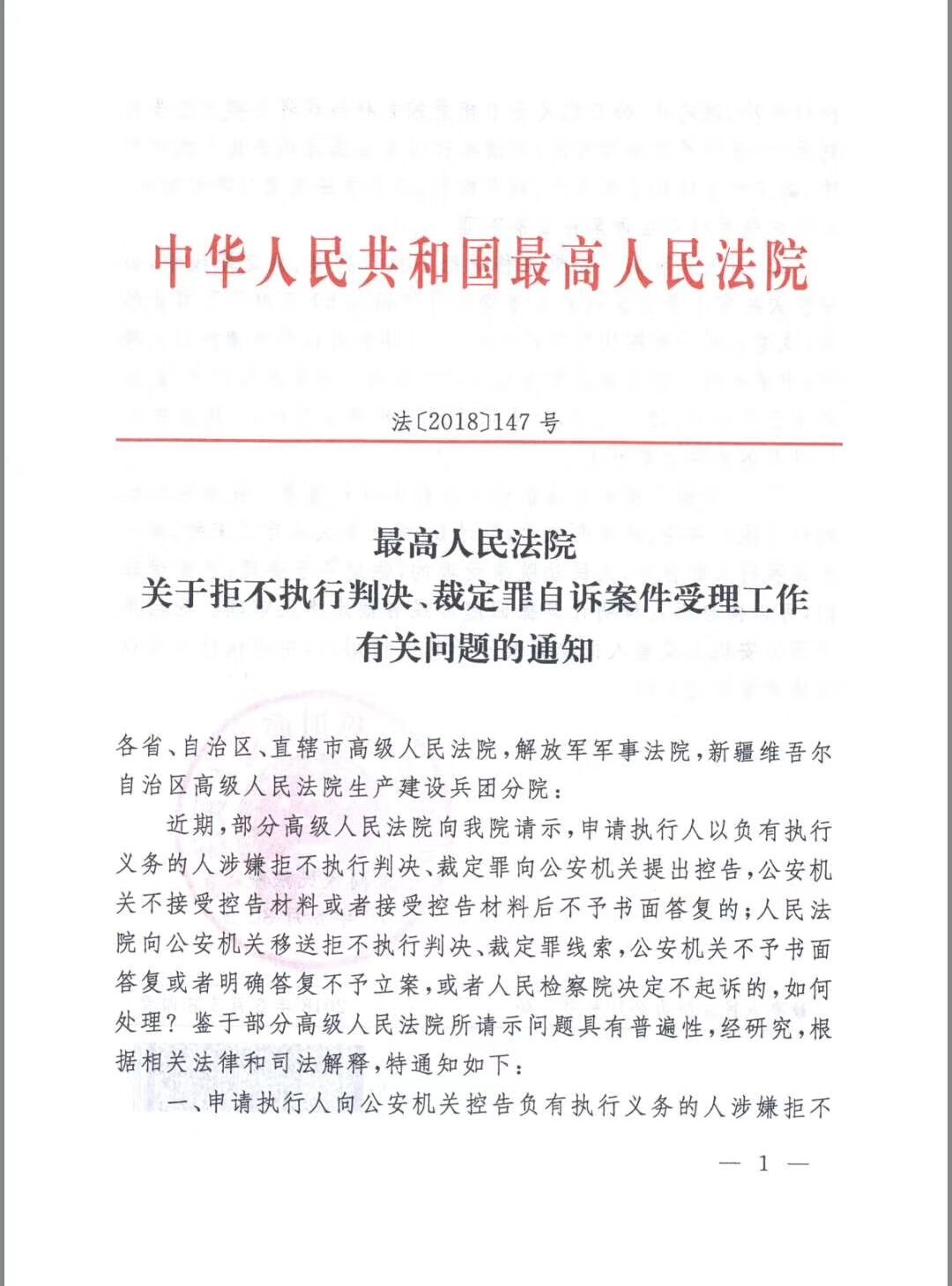 关于拒不执行判决、裁定罪自诉案件受理工作有关问题的通知