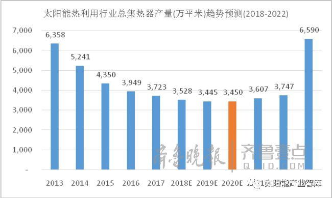 报告指出,中国太阳能热利用市场整体将呈现“U”型复苏。随着商用热水市场扩张及城镇化的进一步推进,可以预见未来城镇太阳能热水市场份额将进一步增大,到2022年左右,城镇太阳能热水市场份额将接近90%;研究认为中国的太阳能热利用在新需求的驱动下,将于2020年开始复苏,远期(2030年)来看,太阳能热利用行业依然能够回到行业最高峰时期6000万平米的年装机面积。