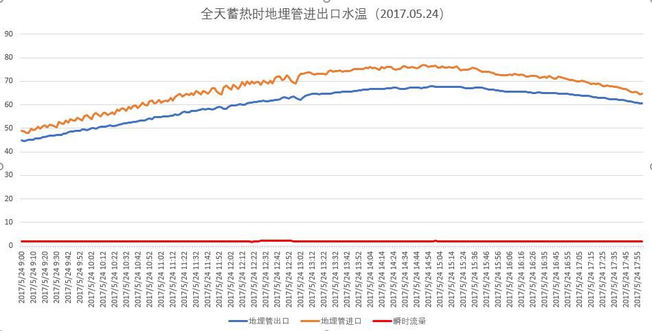 4.2全天模式下,地埋管进出水温度及蓄热功率变化
